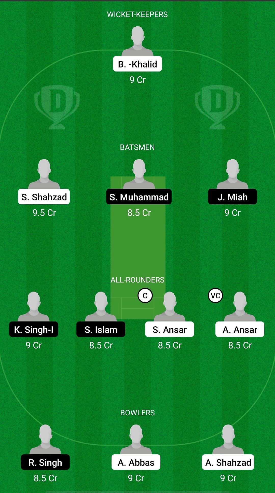 Fantasy Suggestion #2: Bakhtair Khalid, Shanawar Shahzad, Saqib Muhammad, Jubed Miah, Kuldeep Singh-I, Sofiqul Islam, Sufian Ansar, Aqeel Ansar, Randip Singh, Adnan Abbas, Mehmood Akhtar.