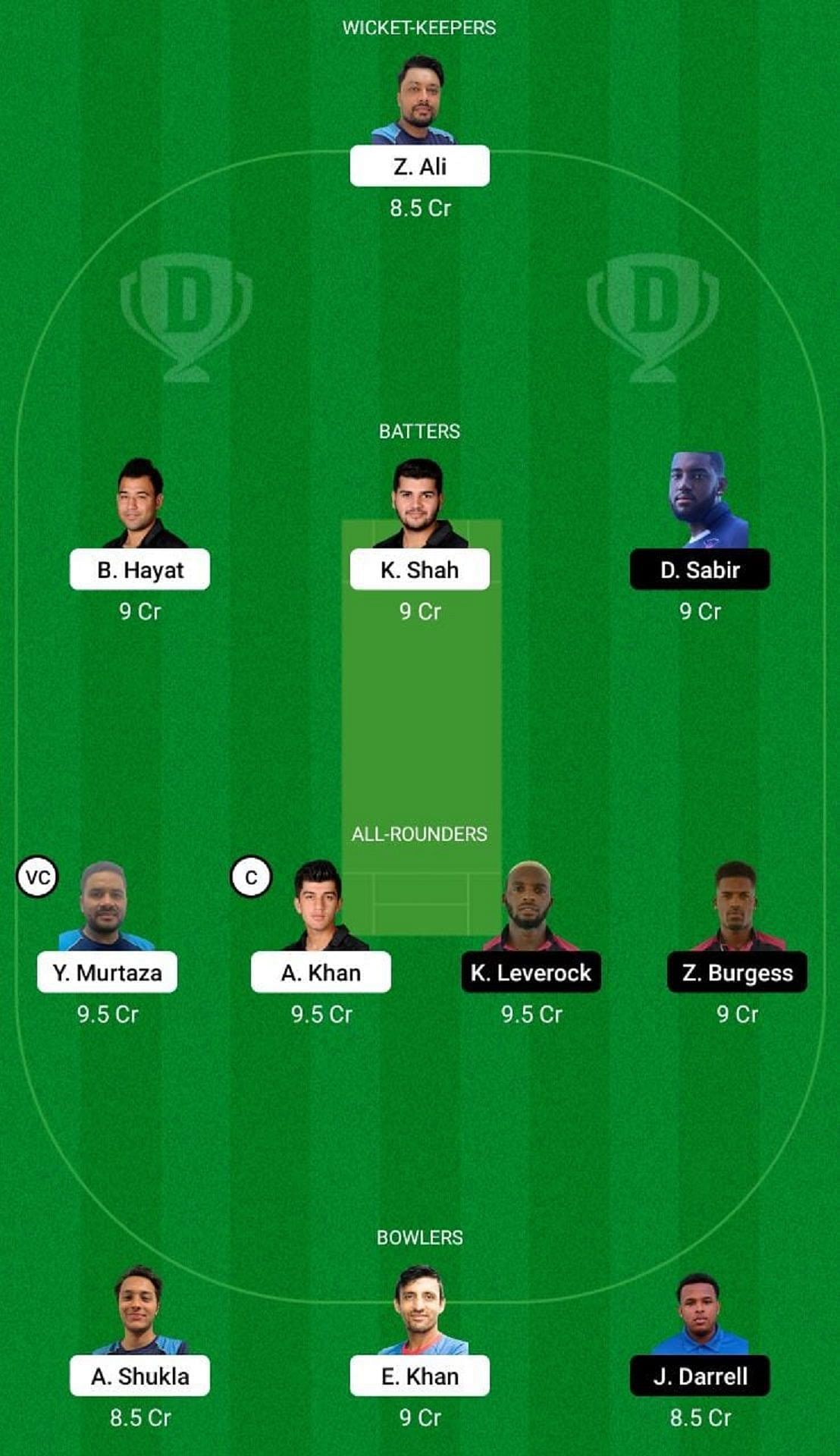 Fantasy Suggestion #1: Z Ali, K Shah, B Hayat, D Sabir, Y Murtaza, A Khan, K Leverock, Z Burgess, E Khan, A Shukla, J Darrell.