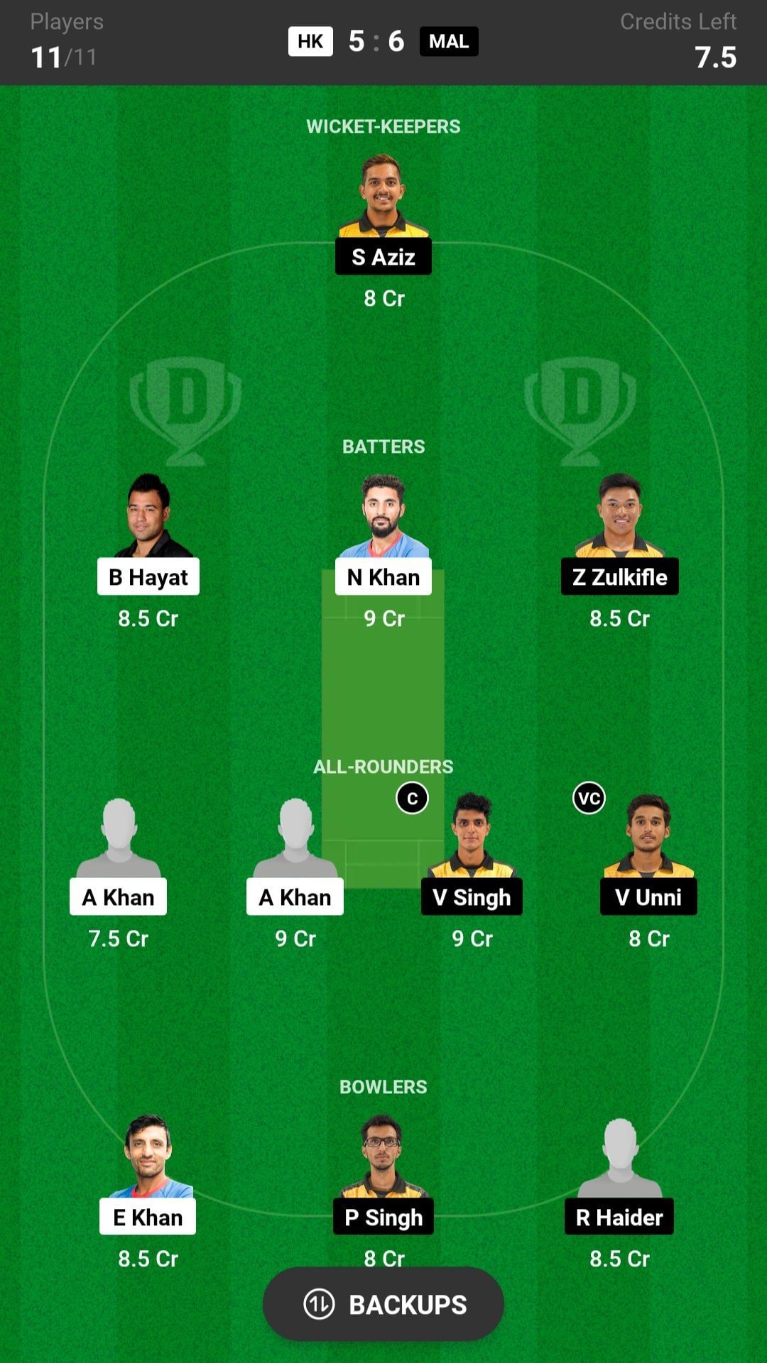 HK vs MAL match captain and vice-captain choices