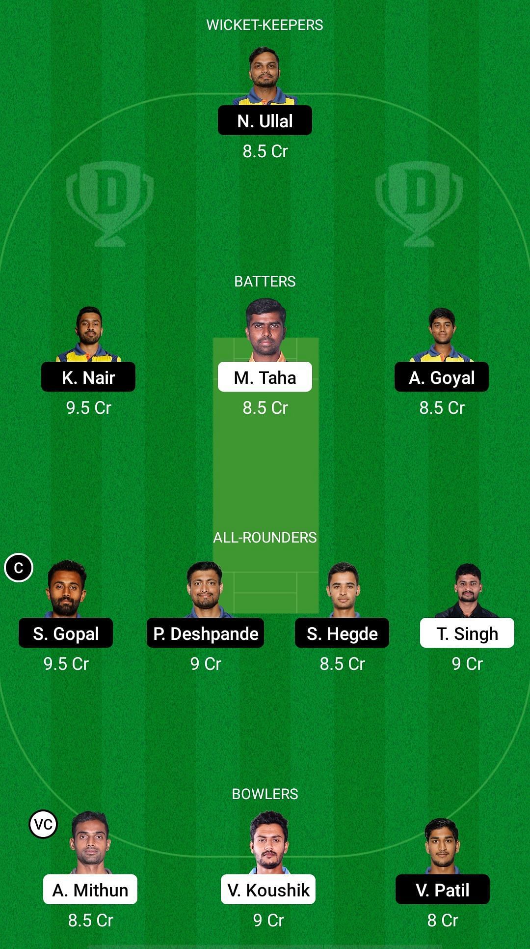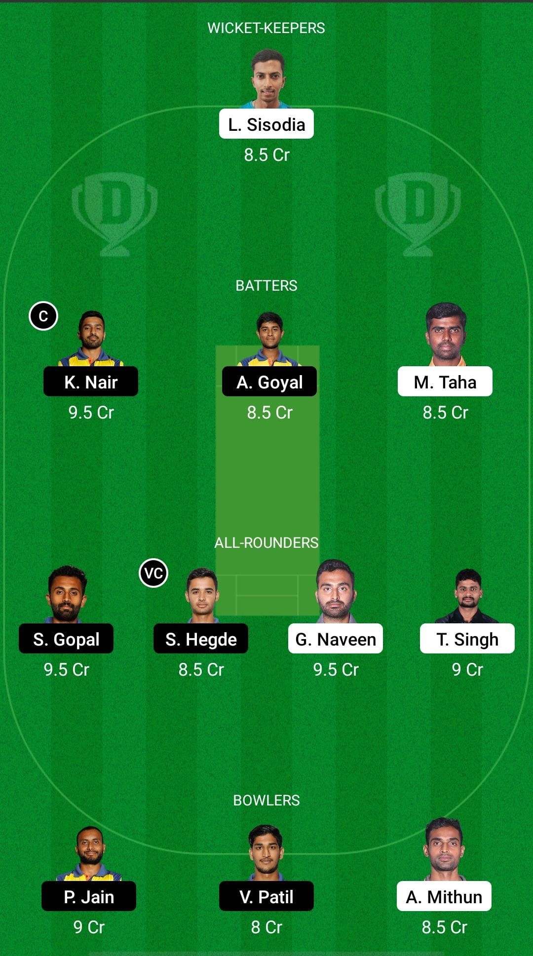 Captain: Shreyas Gopal. Vice-captain: Abhimanyu Mithun.
