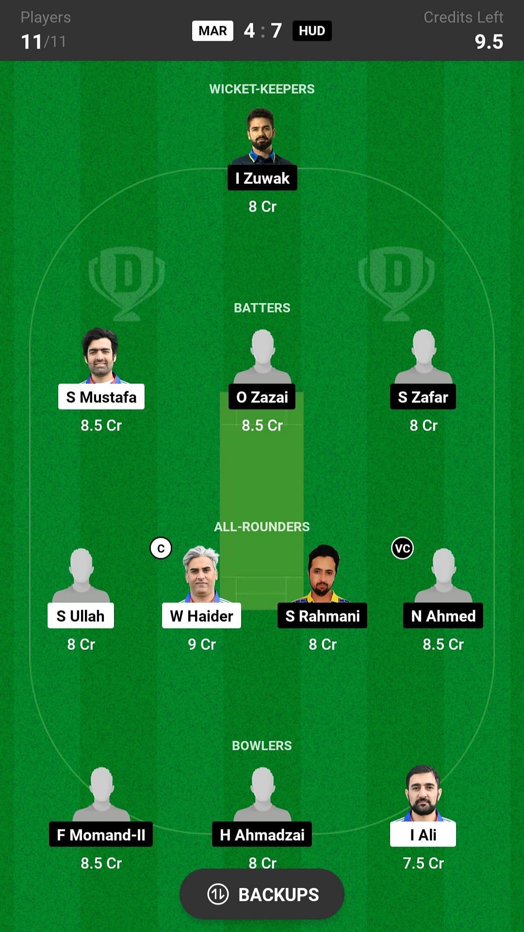 W Haider and N Ahmed are the best all-rounder picks for the Dream11 team as they will bat in the top order and also complete their quota of overs. S Ullah is another good pick for today's Dream11 match.