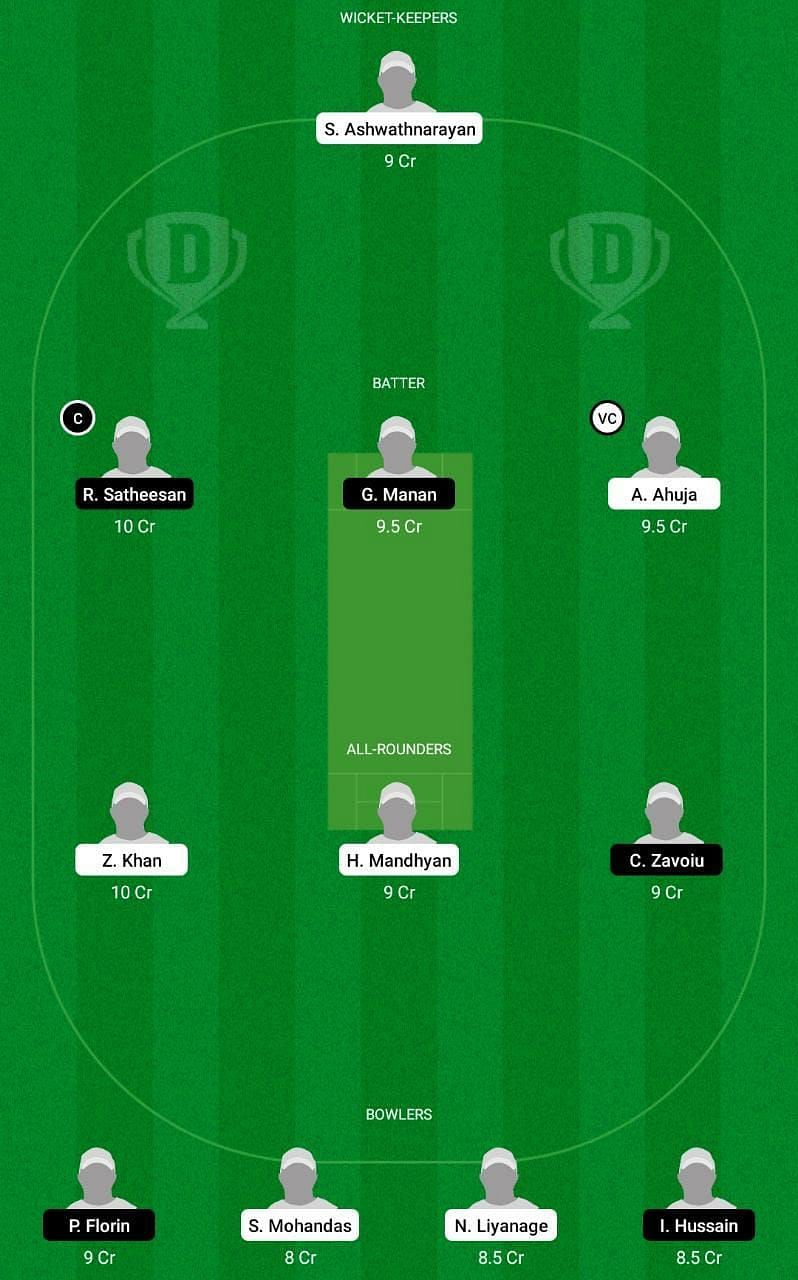 Fantasy Suggestion #1: S Ashwathnarayan, A Ahuja, G Manan, R Satheesan, C Zavoiu, H Mandhyan, Z Khan, I Hussain, P Florin, N Liyanage and S Mohandas