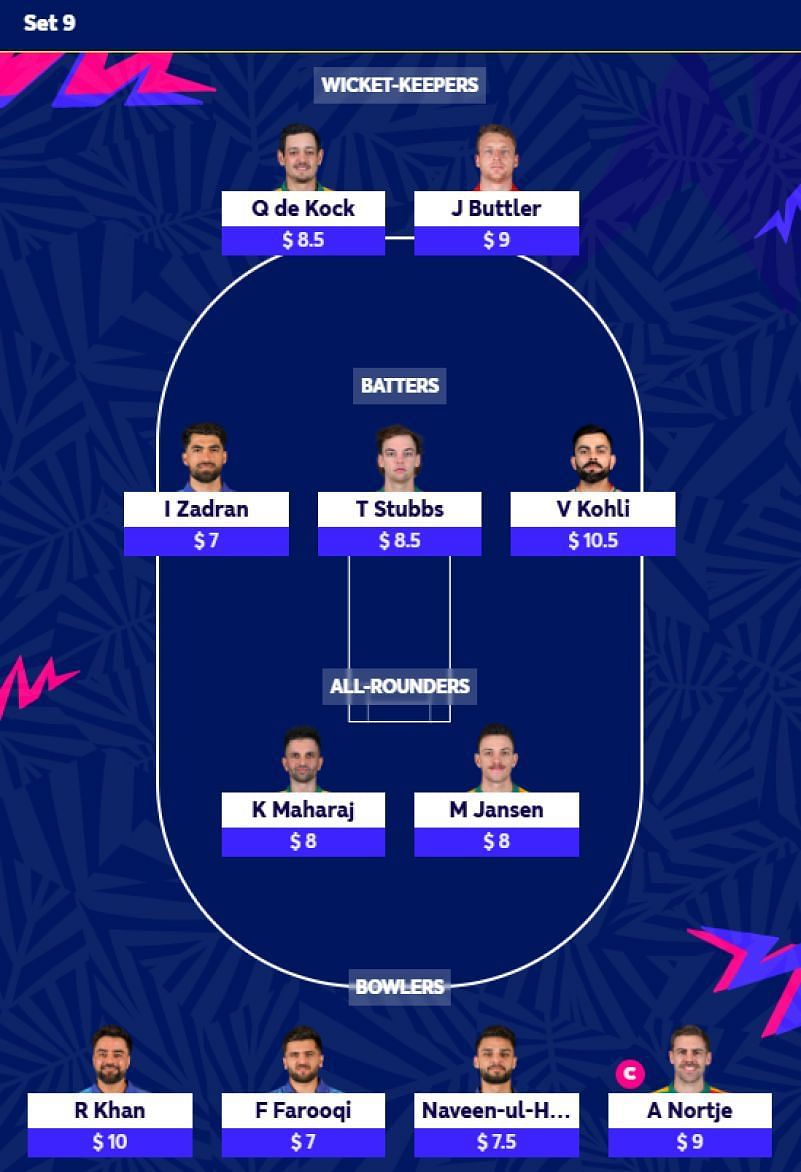 Best Fantasy XI for Set 9 - ICC Men's T20 World Cup Fantasy 2024