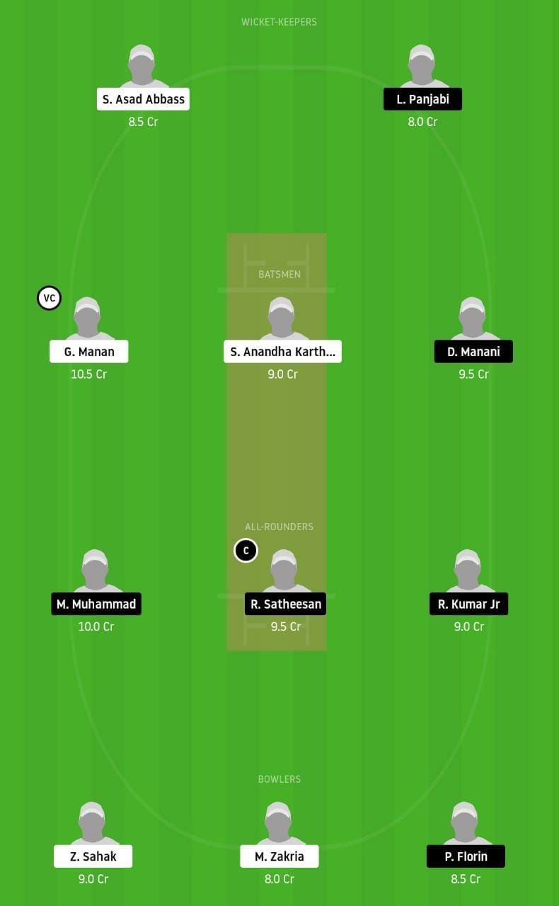 Fantasy Suggestion #2: S Abbass, L Panjabi, G Manan, C Zavoiu, D Manani, R Satheesan, R Kumar, M Muhammad, Z Sahak, M Zakria and A Kalyani