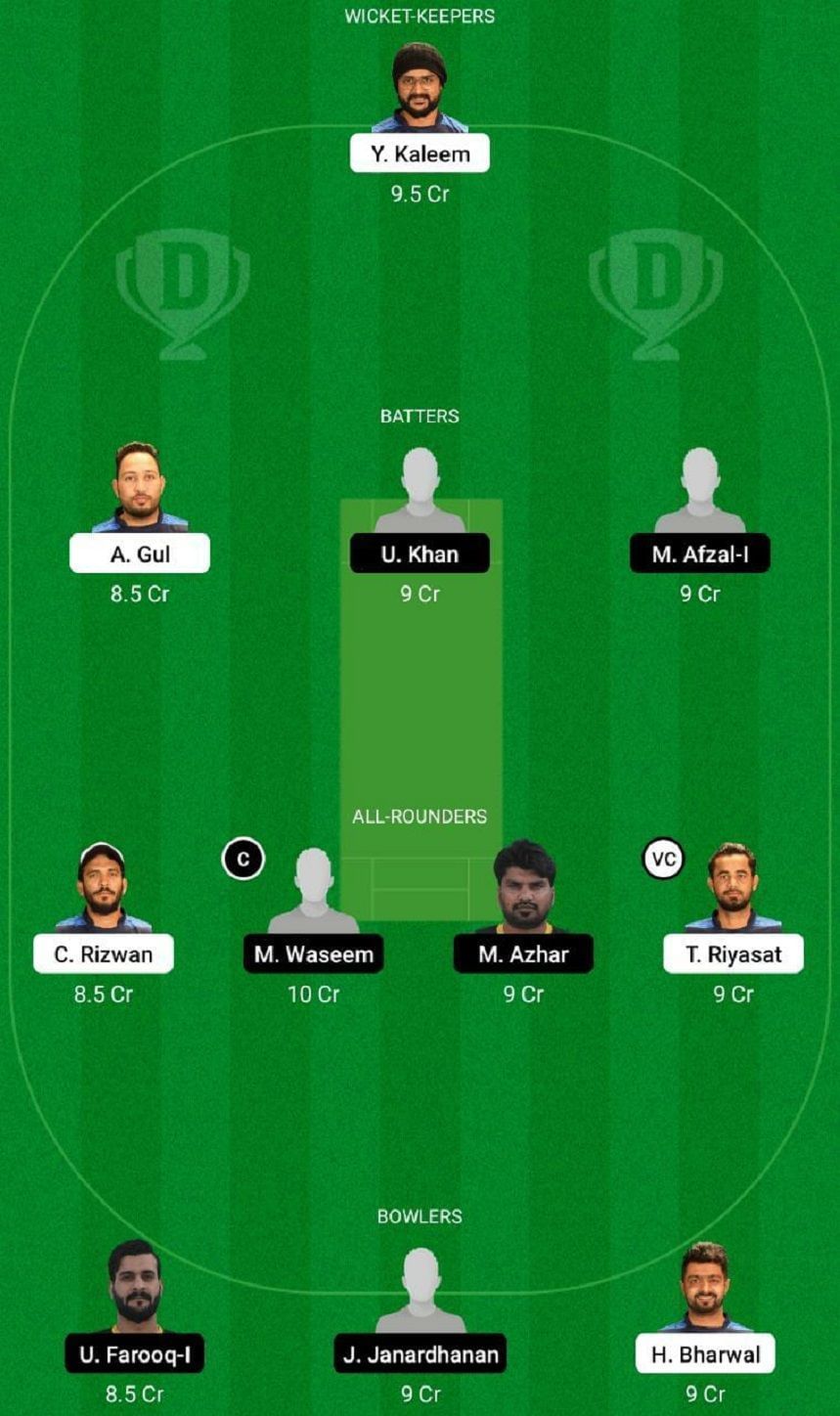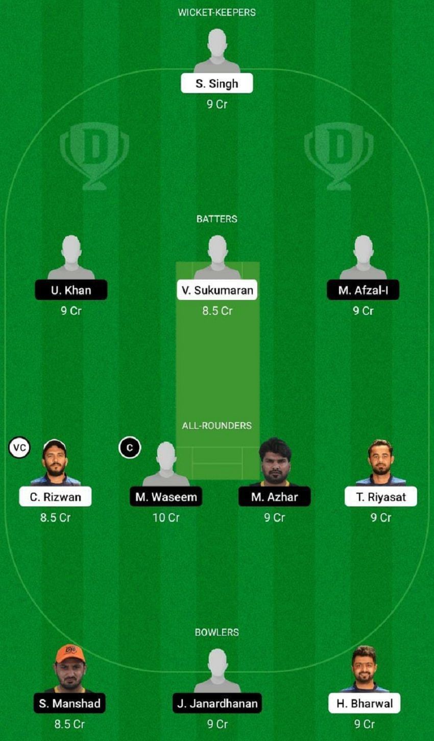 Fantasy Suggestion #1: S Singh, U Khan, V Sukumaran, M Afzal, CP Rizwan, M Waseem, M Azhar, T Riyasat, S Manshad, J Janardhanan and H Bharwal.