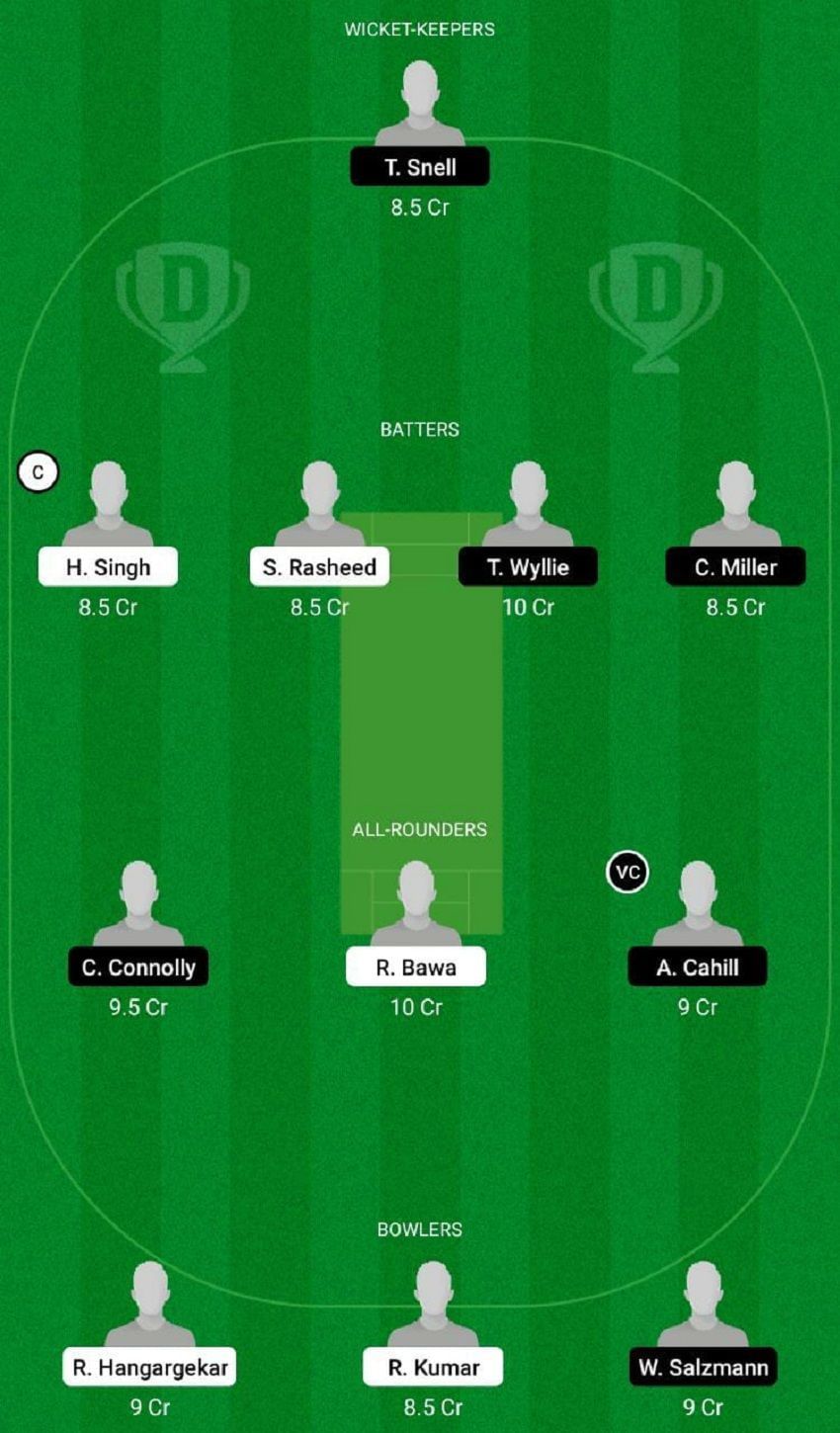 Fantasy Suggestion #2: T Snell, S Rasheed, H Singh, T Wyllie, C Miller, C Connolly, R Bawa, A Cahill, R Hangargekar, R Kumar and W Salzmann