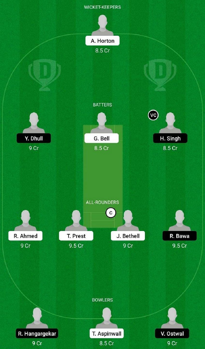 Fantasy Suggestion #1: J Rew, Y Dhull, W Luxton, H Singh, R Ahmed, T Prest, J Bethell, R Bawa, R Hangargekar, J Boyden and V Ostwal