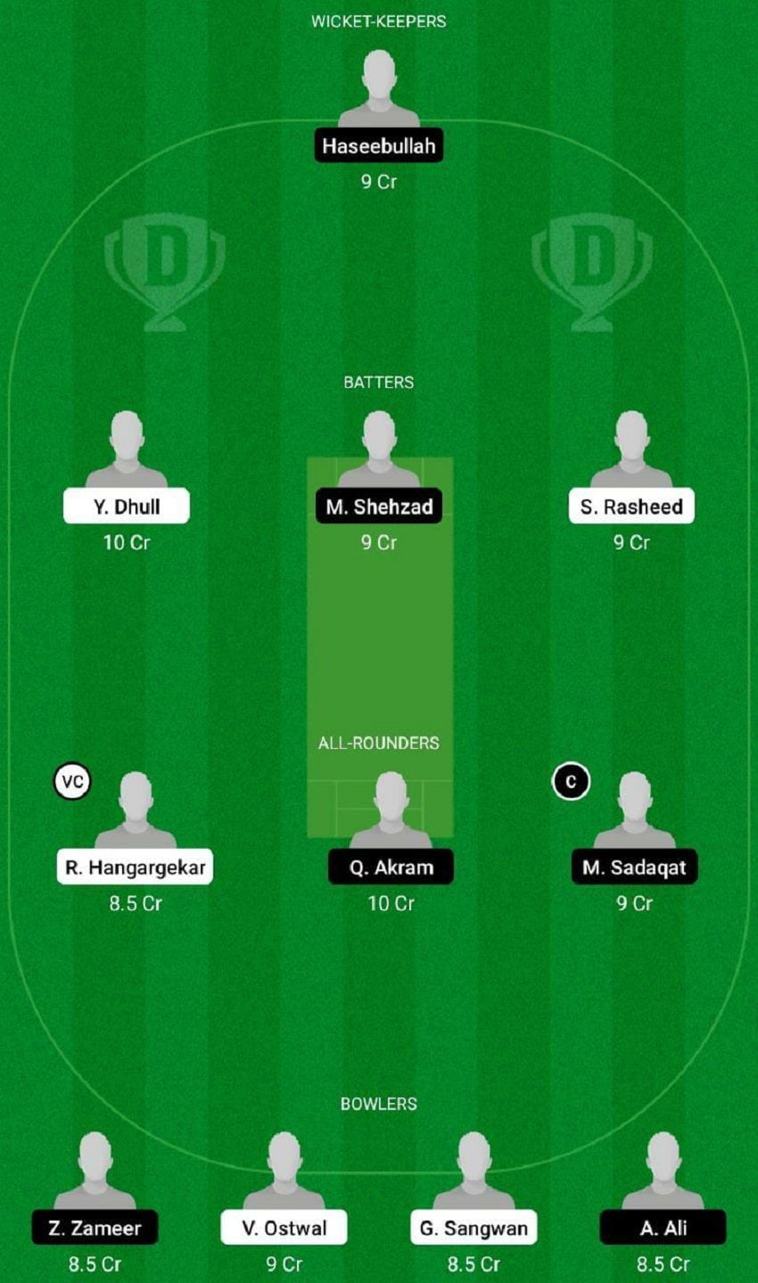 Fantasy Suggestion #2: Haseebullah, M Shehzad, Y Dhull, S Rasheed, R Hangargekar, Q Akram, M Sadaqat, G Sangwan, Z Zameer, V Ostwal and A Ali