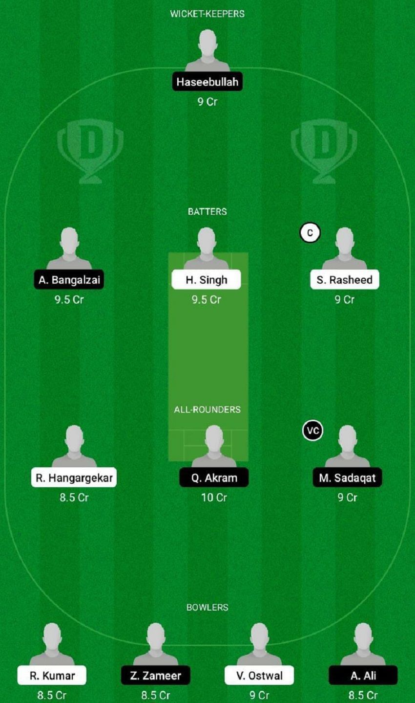 Fantasy Suggestion #1: Haseebullah, A Bangalzai, H Singh, S Rasheed, R Hangargekar, Q Akram, M Sadaqat, R Kumar, Z Zameer, V Ostwal and A Ali