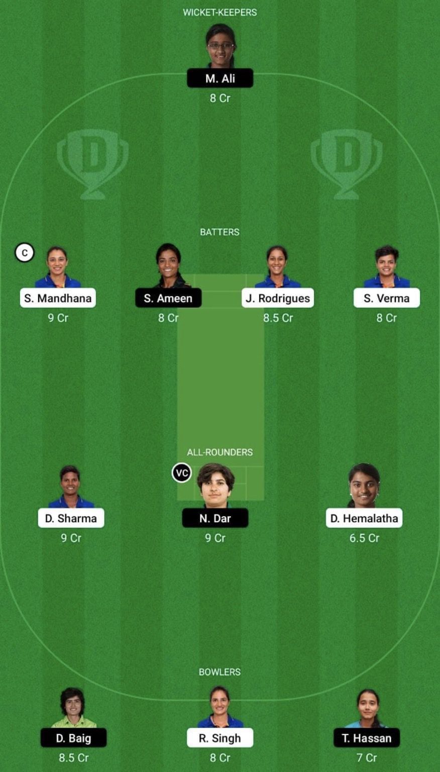 Tuba Hassan is one of the best youngsters in the world and has impressed in recent games, picking up four wickets in three matches. She has an economy rate of just 3.67, which is among the best in the tournament. Given her form and the conditions on offer, Hassan is a good pick for your IN-W vs PK-W Dream11 prediction team.