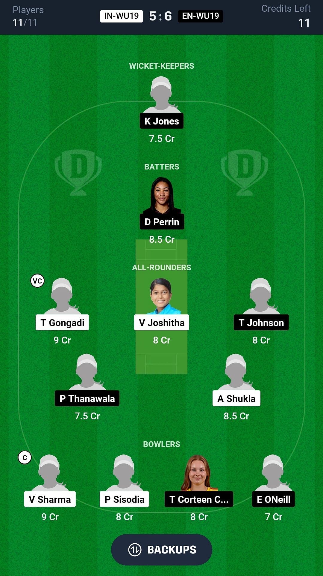 V Sharma is one of the most crucial picks from the India Women Under 19 squad as she will bat in the middle order and complete her quota of overs. Fans can make her captain in grand league teams. She has taken 12 wickets in the last four matches.