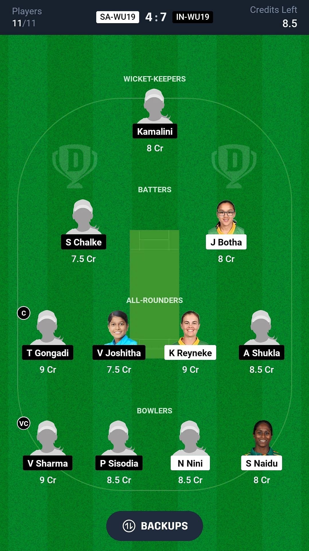 IN-WU19 vs SA-WU19 match captain and vice-captain choices