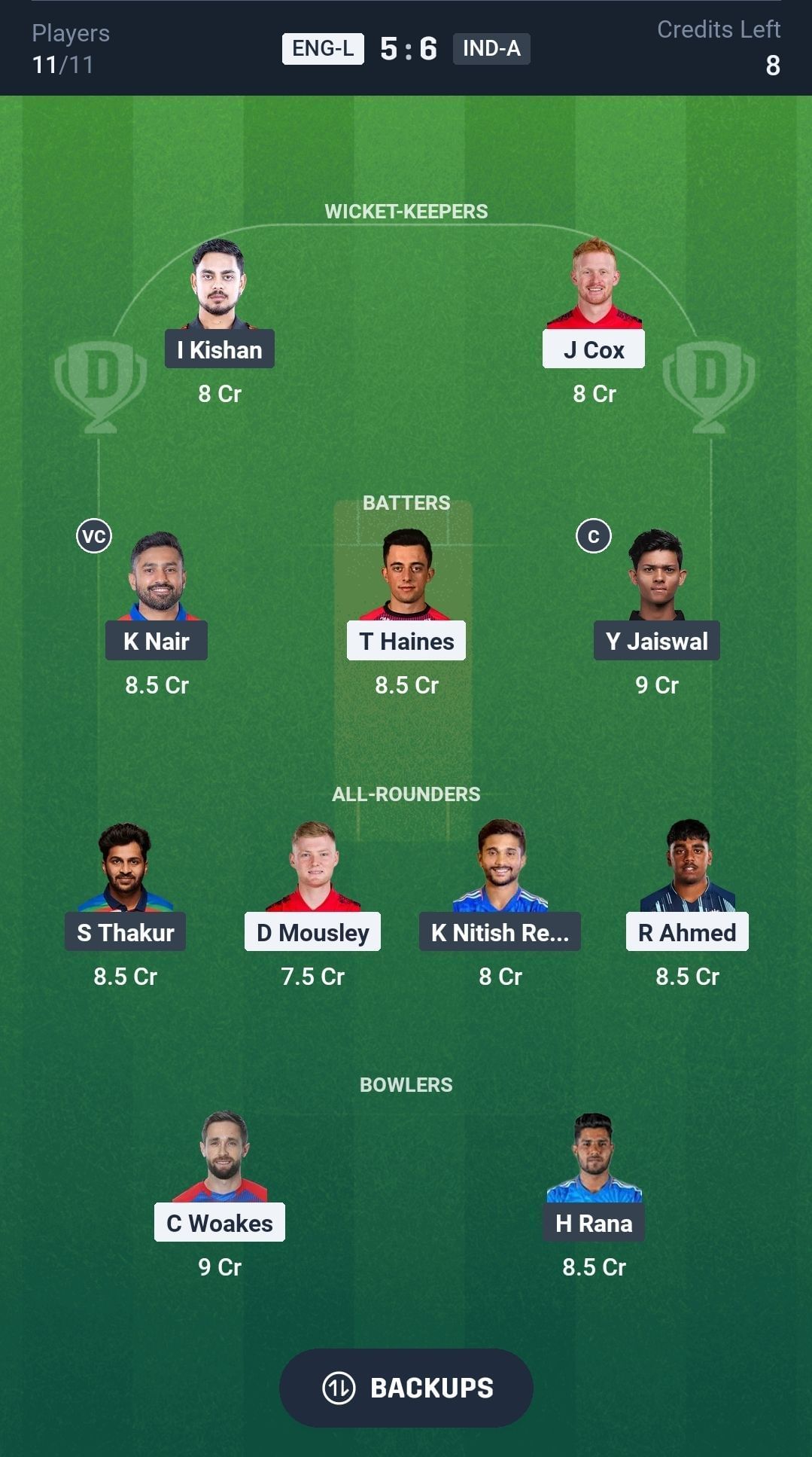 IND-A vs ENG-L match captain and vice-captain choices