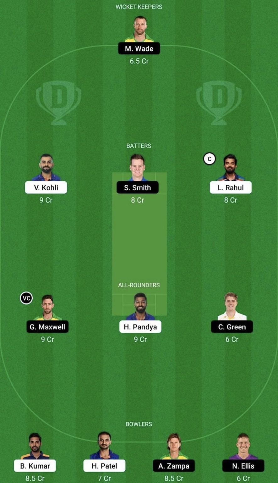 All-rounders: Glenn Maxwell (vc), Hardik Pandya, Cameron Green