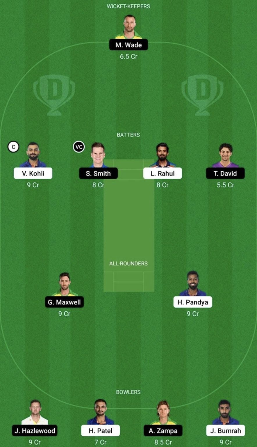 Bowlers: Jasprit Bumrah, Harshal Patel, Adam Zampa, Josh Hazlewood