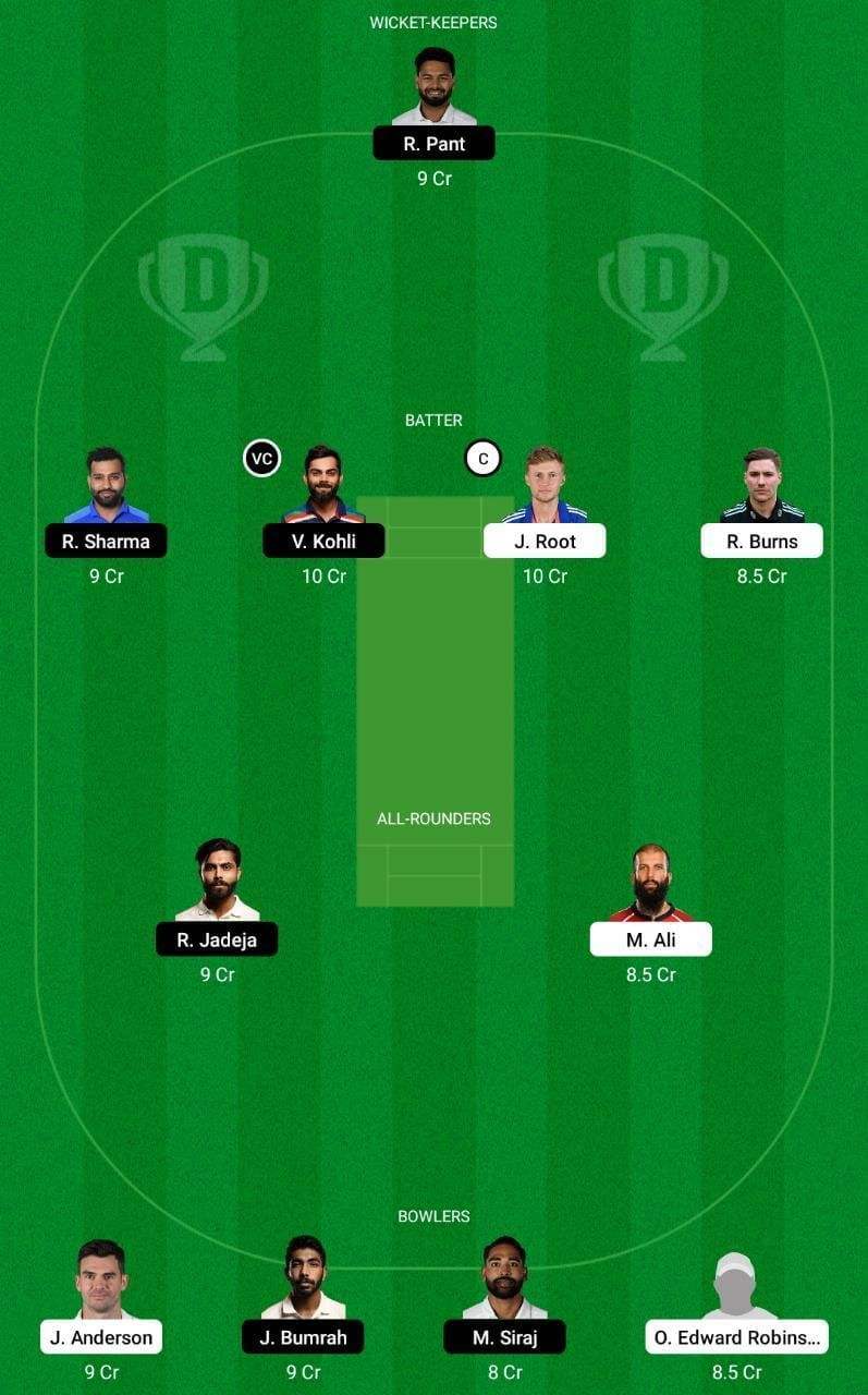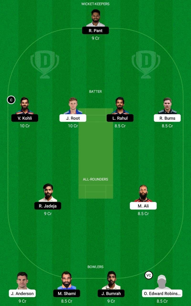 Fantasy Suggestion #1: Rishabh Pant, Joe Root, Lokesh Rahul, Rory Burns, Virat Kohli, Ravindra Jadeja, Moeen Ali, Jasprit Bumrah, Ollie Robinson, Mohammed Shami and James Anderson