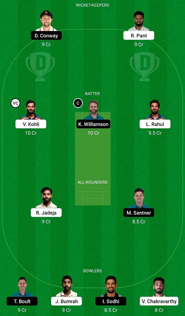 Fantasy Suggestion #2: Rishabh Pant, Devon Conway, Virat Kohli. KL Rahul, Kane Williamson, Ravindra Jadeja, Mitchell Santner, Ish Sodhi, Varun Chakravarthy, Trent Boult and Jasprit Bumrah