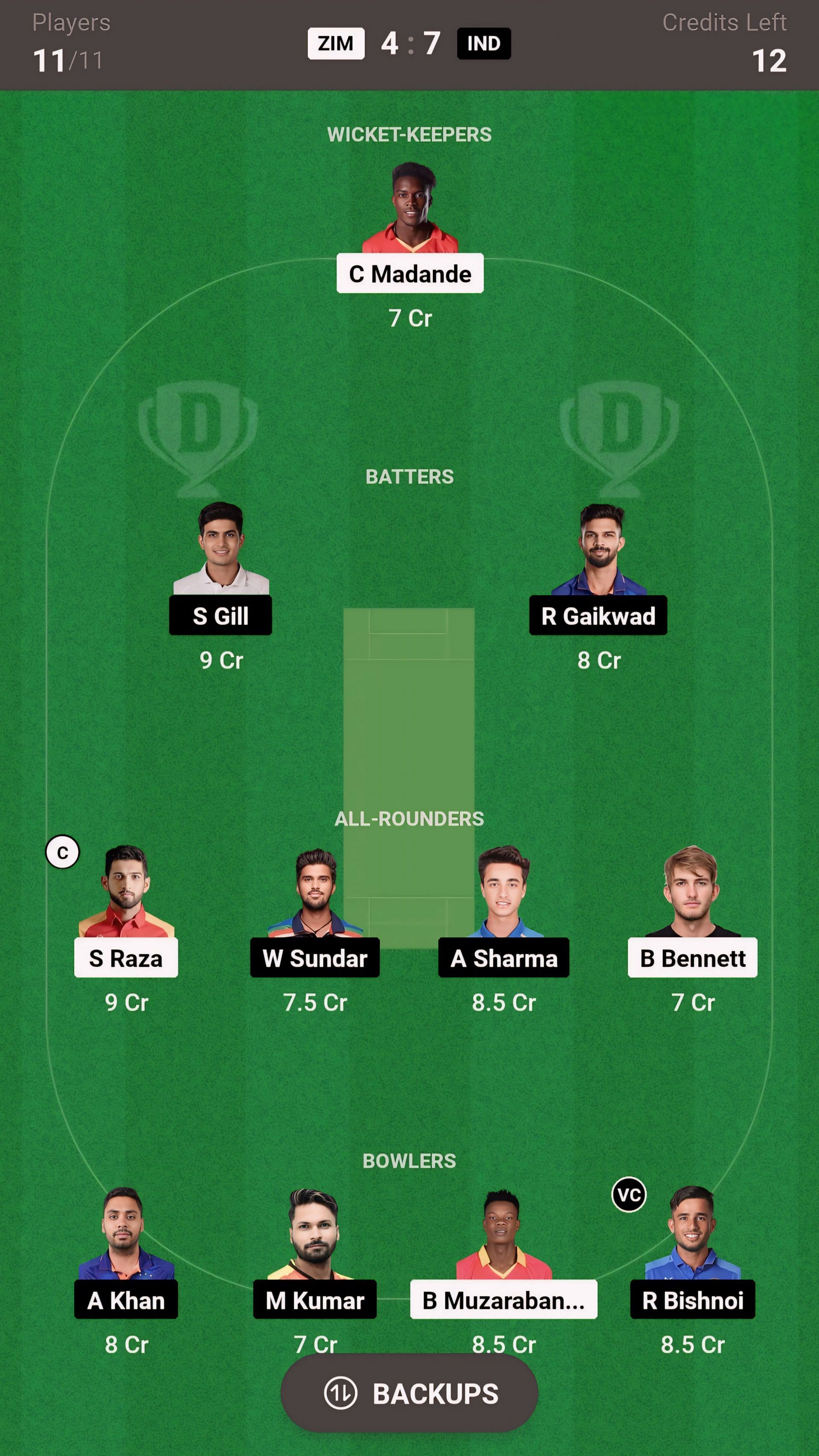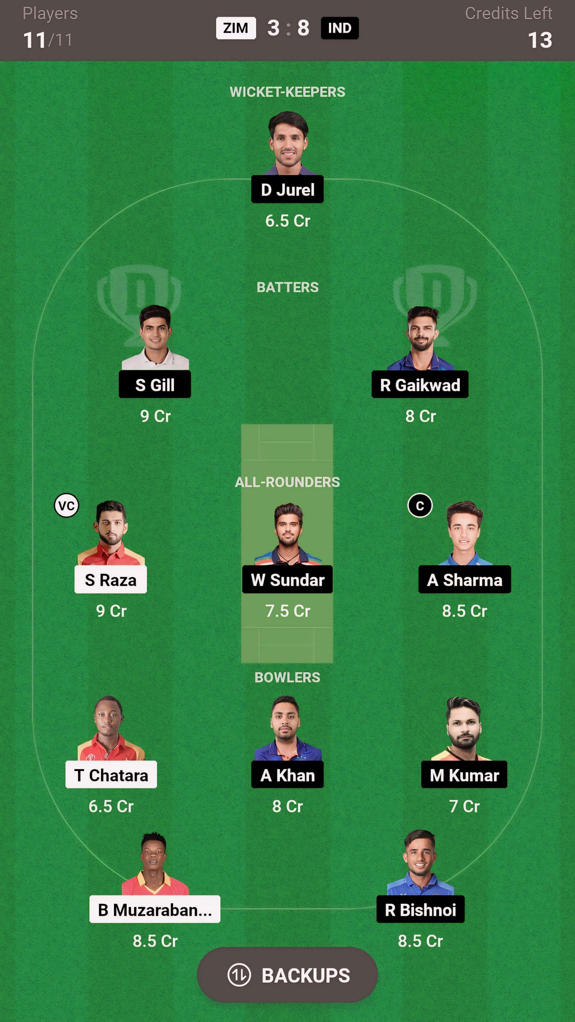IND vs ZIM match captain and vice-captain choices