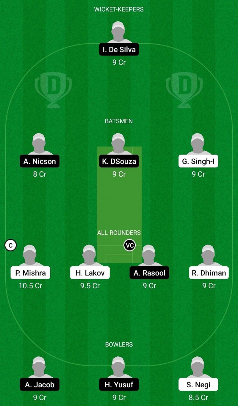 Fantasy Suggestion #2: Uahedullah Shinvari, Ashbel Nicson, Kevin D'Souza, Gagandeep Singh, Prakash Mishra, Hristo Lakov, Ali Rasool, Rohit Dhiman, Albin Jacob, Huzaif Yousuf, Muhammad Tayub