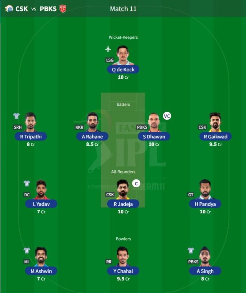 IPL 2022 Fantasy Team for Match 11 - CSK vs PBKS