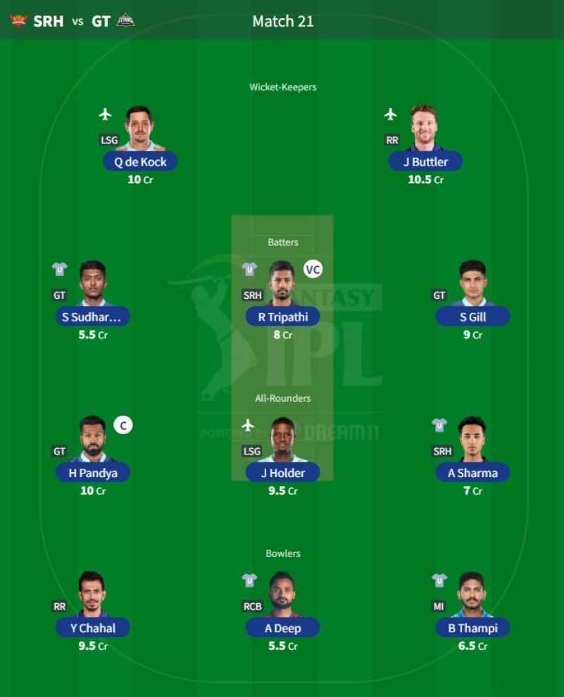 IPL 2022 Fantasy Team for Match 21 - SRH vs GT