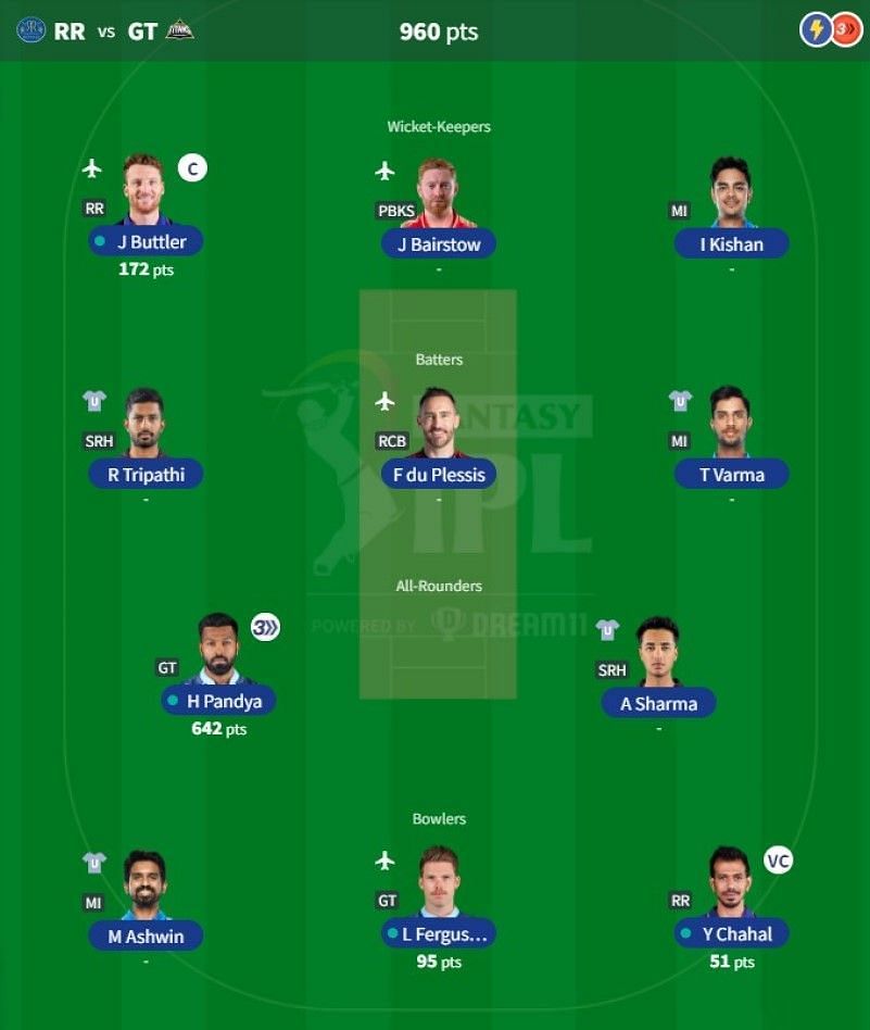 3X: Hardik Pandya | Captain: Jos Buttler | Vice-captain: Yuzvendra Chahal (Triple-Impact used)