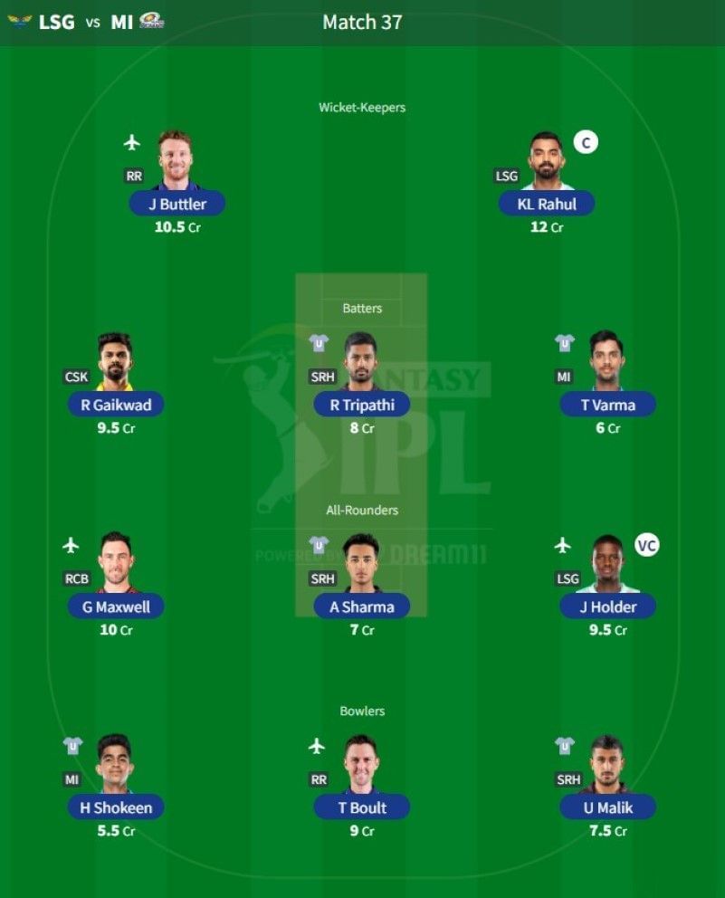 IPL 2022 Fantasy Team for Match 37 - LSG vs MI