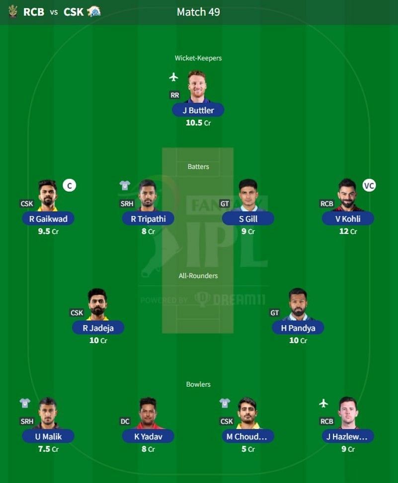 IPL 2022 Fantasy Team for Match 49 - RCB vs CSK