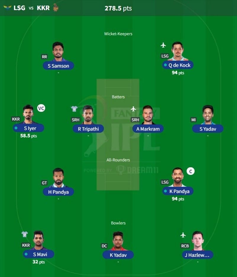 Captain: Krunal Pandya | Vice-captain: Shreyas Iyer.