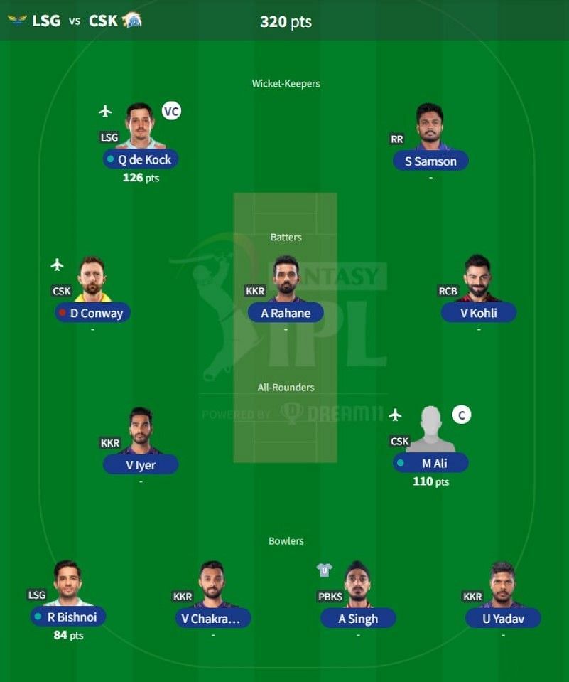 Quinton de Kock (WK) (LSG) (10 Credits)| Next Fixture: vs SRH, Match 12.