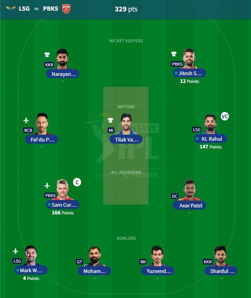 Captain: Sam Curran | Vice-captain: KL Rahul
