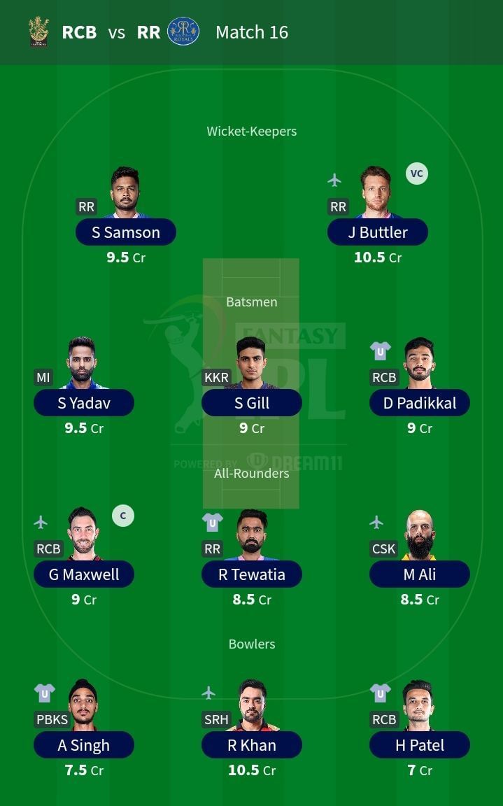 Best IPL Fantasy Team for Match 16, RCB vs. RR:
