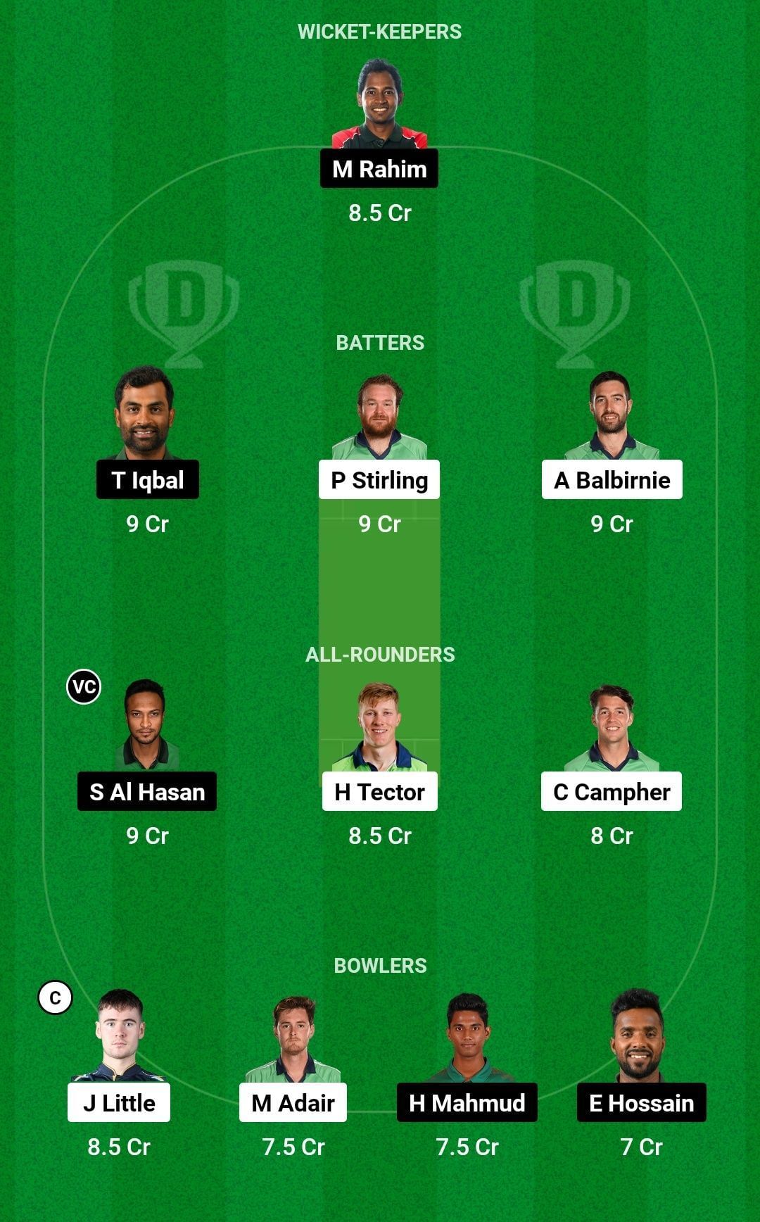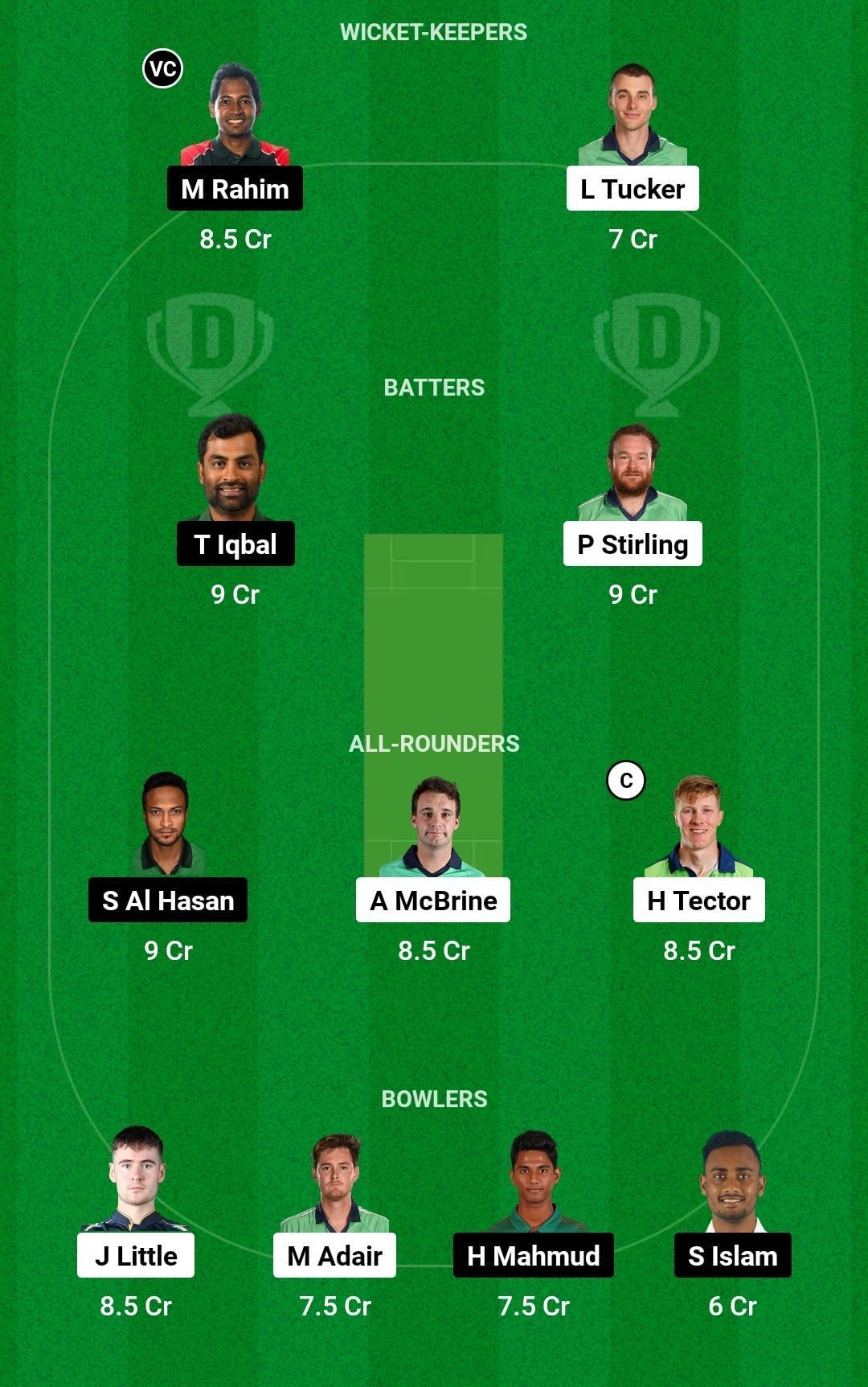 IRE vs BAN Dream11 Prediction Team Today, Grand League
