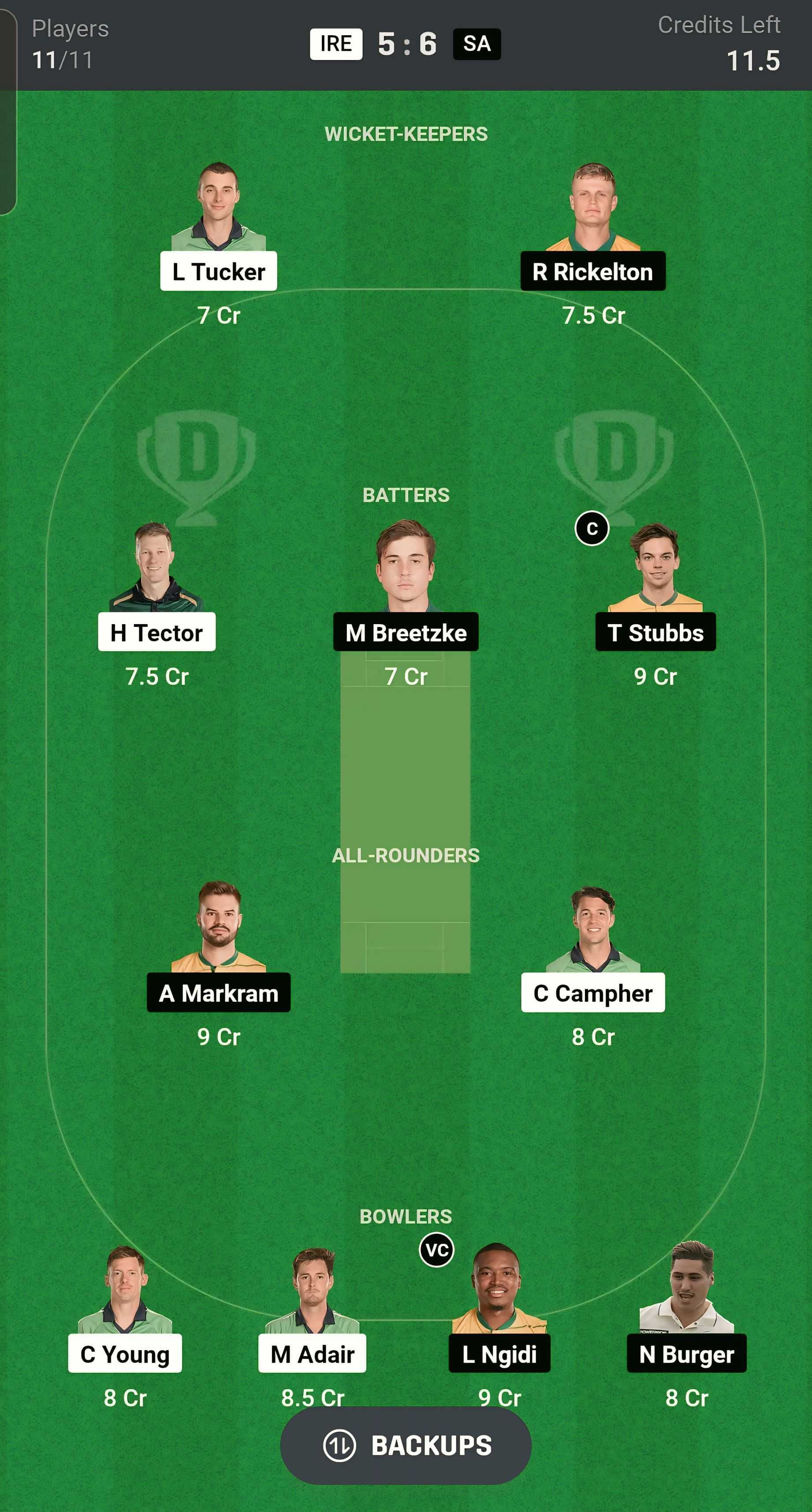 Ireland vs South Africa Dream11 Prediction Today, Grand League
