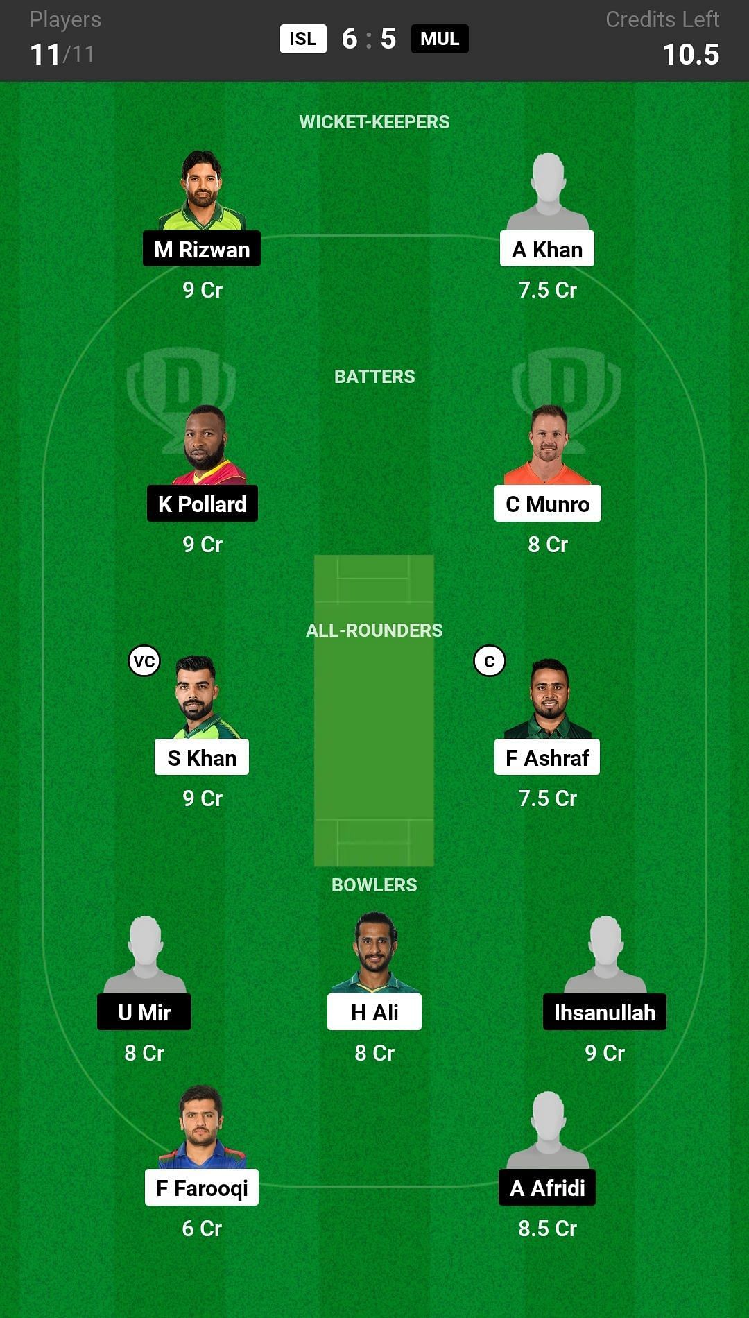 Islamabad United vs Multan Sultans Dream11 Prediction Today, Grand League