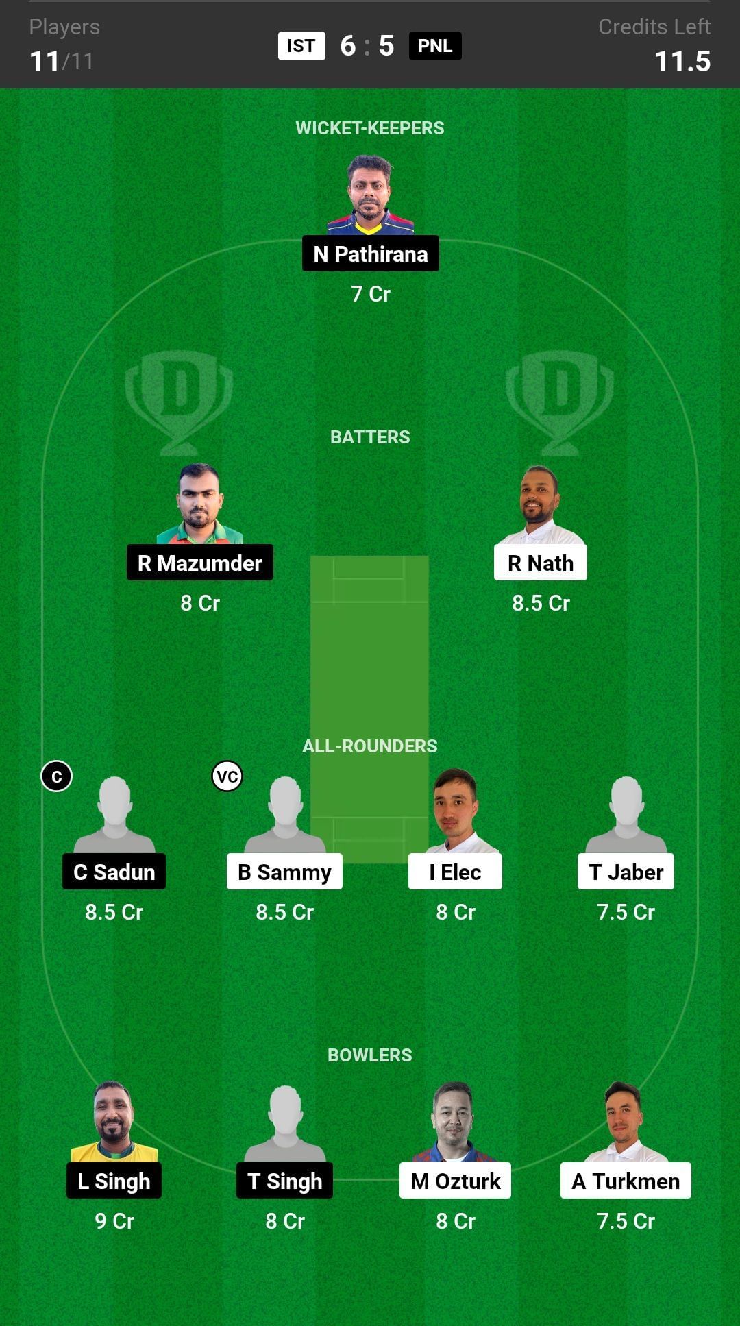 Istanbul KSK vs Punjab Lions Nicosia Dream11 Prediction Today, Grand League