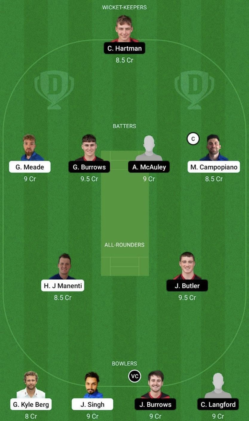 Fantasy Suggestion #1: C Hartman, G Burrows, N Knights, M Campopiano, A Joseph Mosca, H Manenti, J Butler, B Khan, G Berg, J Burrows and C Langford.