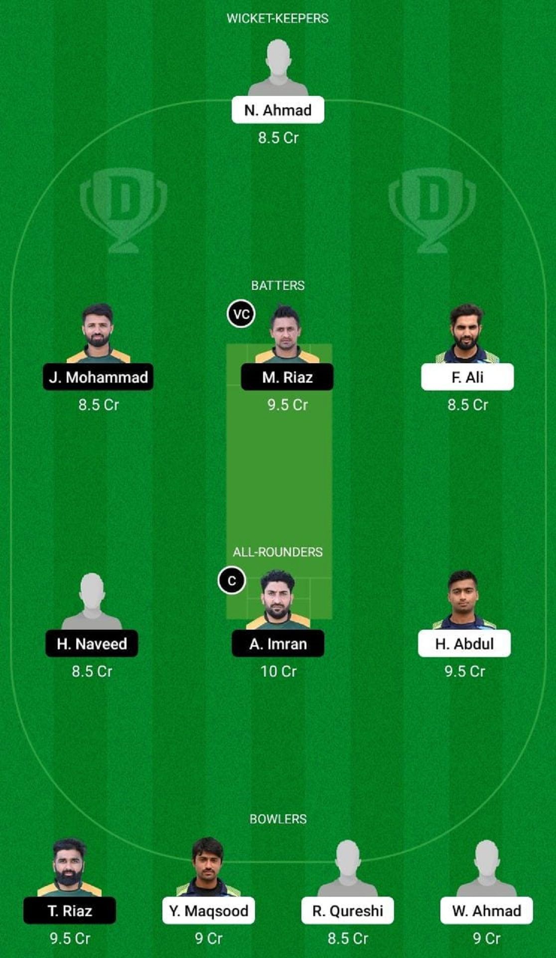 Fantasy Suggestion #1: N Ahmad, M Riaz, F Ali, J Mohammad, A Imran, H Abdul, H Naveed, T Riaz, W Ahmad, Y Maqsood, R Qureshi.