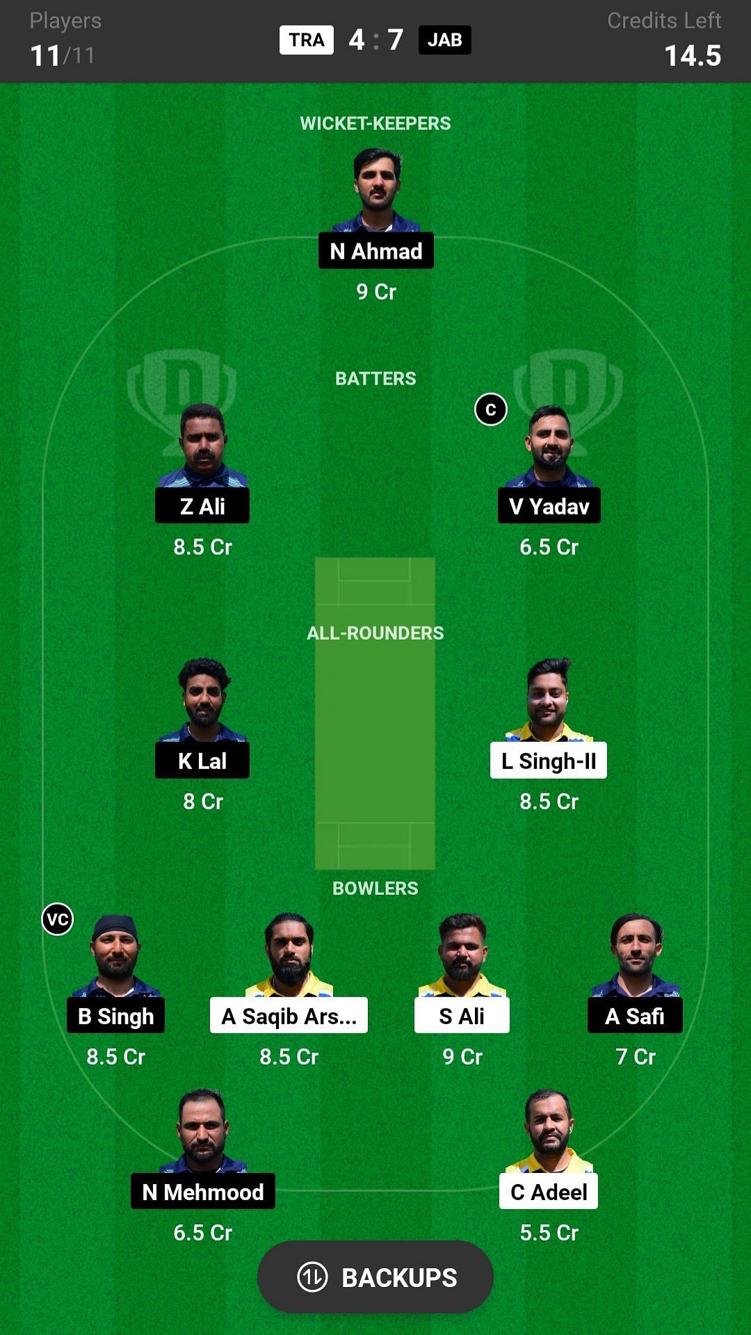 A Awais and V Yadav are the two best batters to pick for the Dream11 team. Z Ali played exceptionally well in the last series, so he is also a good pick for today's Dream11 fantasy team.