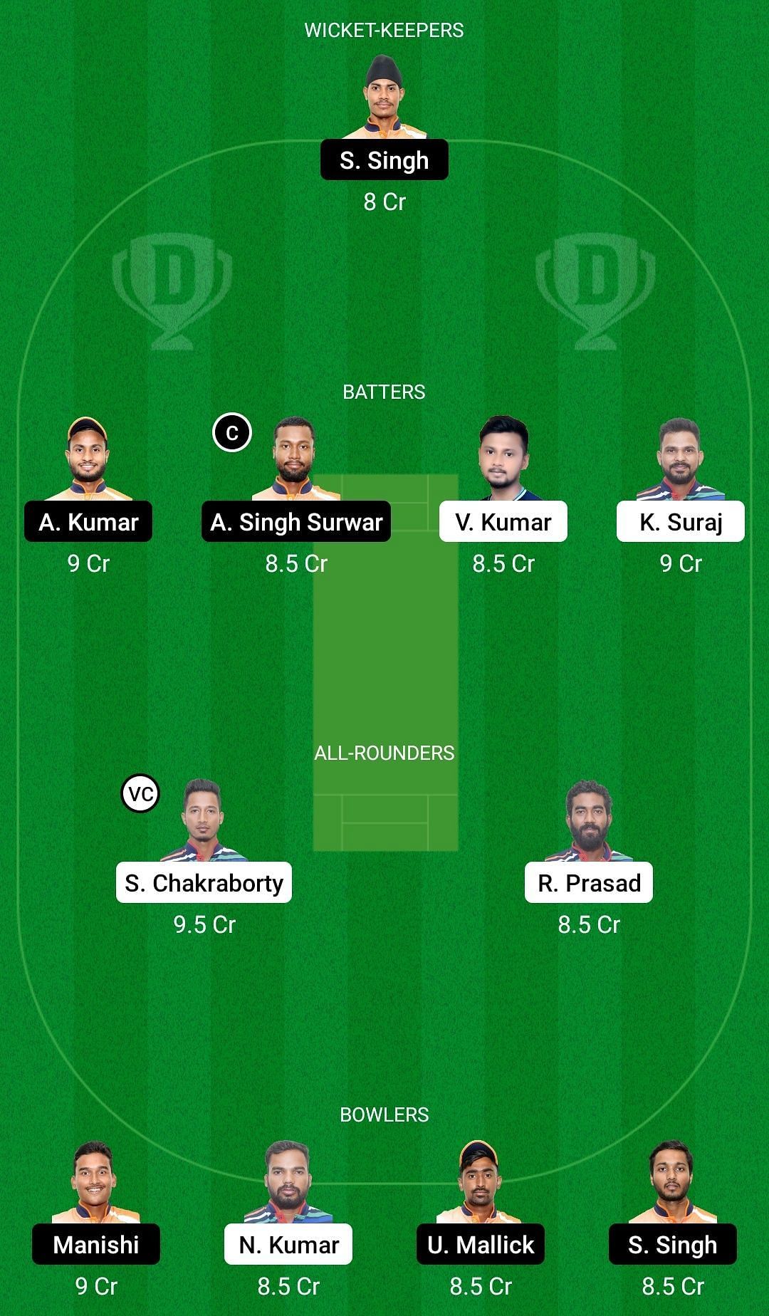 Fantasy Suggestion #1: Sharandeep Singh, Ankit Kumar, Atul Singh Surwar, Vivek Kumar, Kumar Suraj, Supriyo Chakraborty, Rahul Prasad, Manishi, Nishikant Kumar, Umar Mallick, Subham Singh.