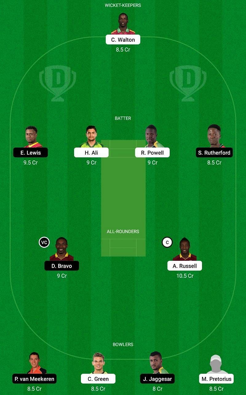 Fantasy Suggestion #2: Chadwick Walton, Evin Lewis, Sherfane Rutherford, Haider Ali, Rovman Powell, Dwayne Bravo, Andre Russell, Jon-Russ Jaggesar, Paul van Meekeren, Chris Green and Migael Pretorius