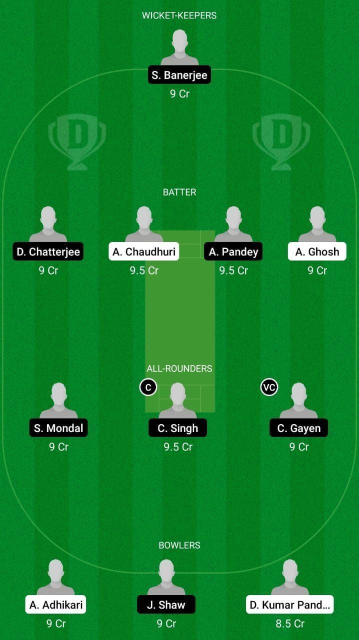 Fantasy Suggestion #2: S Banerjee, A Ghosh, A Chaudhuri, A Pandey, D Chatterjee, C Singh, C Gayen, S Sarkar, A Adhikari, D Kumar Pandey, J Shaw