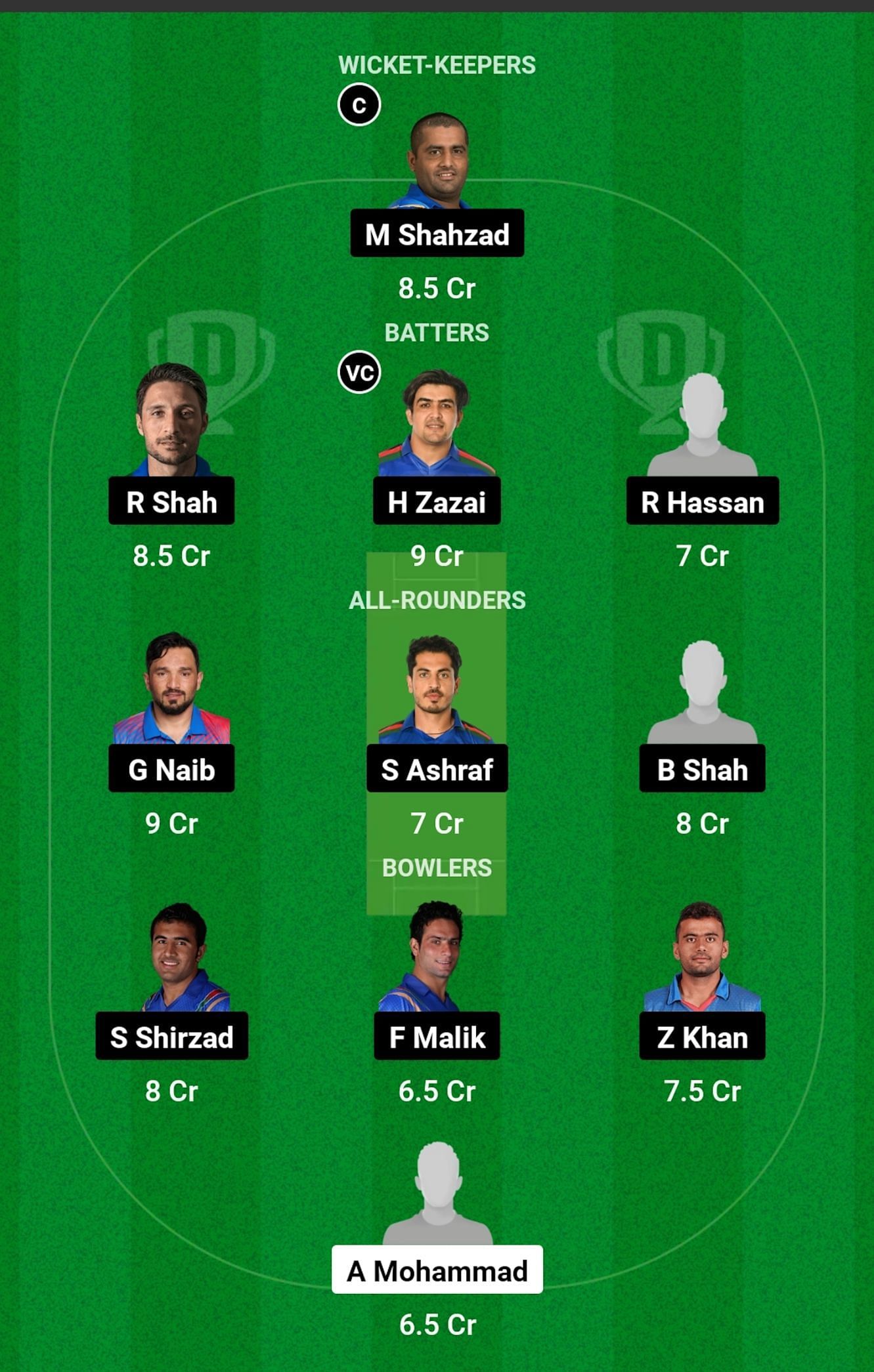 M Shahzad, H Zazai, R Shah, G Naib, B Shah, T Adil, S Ashraf, S Shirzad, Z Khan, F Malik, and A Baqi.