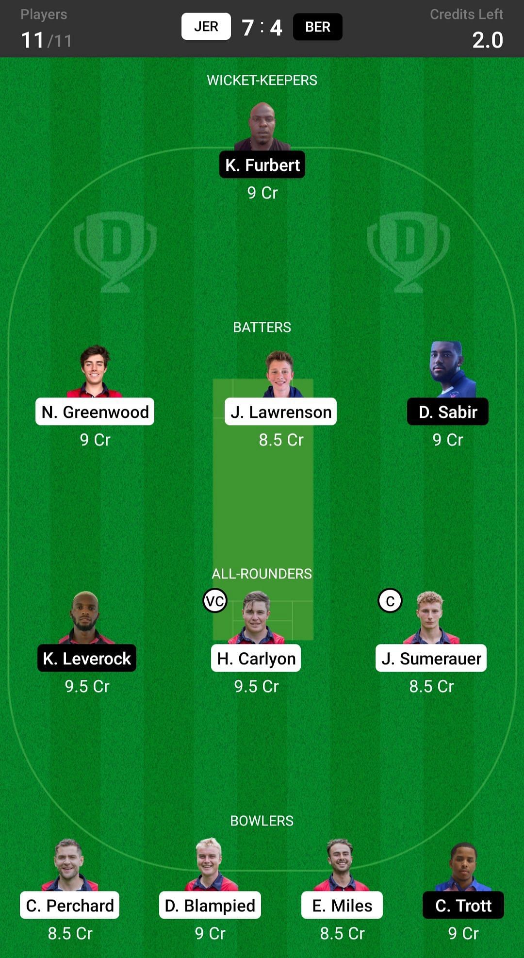 The top bowler picks for this match are D Blampied and C Perchard. Both have bowled brilliantly in the last few matches, and you can also expect them to bowl in death overs. C Trott is another good pick.