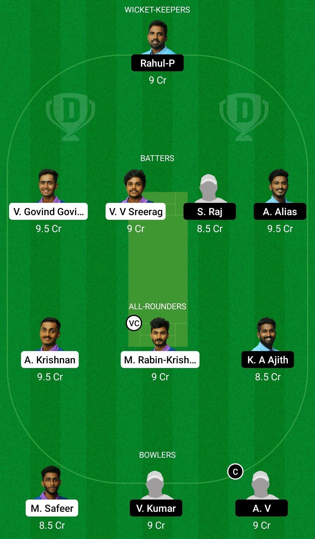 Captain: Ajith V. Vice-captain: Rabin Krishna M.