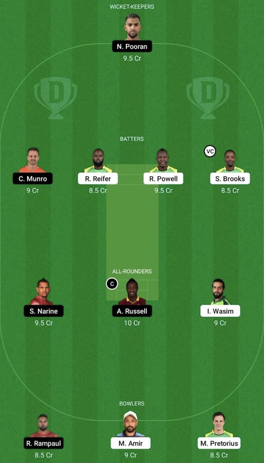 Kieron Pollard is slated to bat at No. 6, but it could vary depending on the game situation. With a strong batting unit comprising Andre Russell, Colin Munro, and Nicholas Pooran in place, Pollard could be one to avoid in this game.
