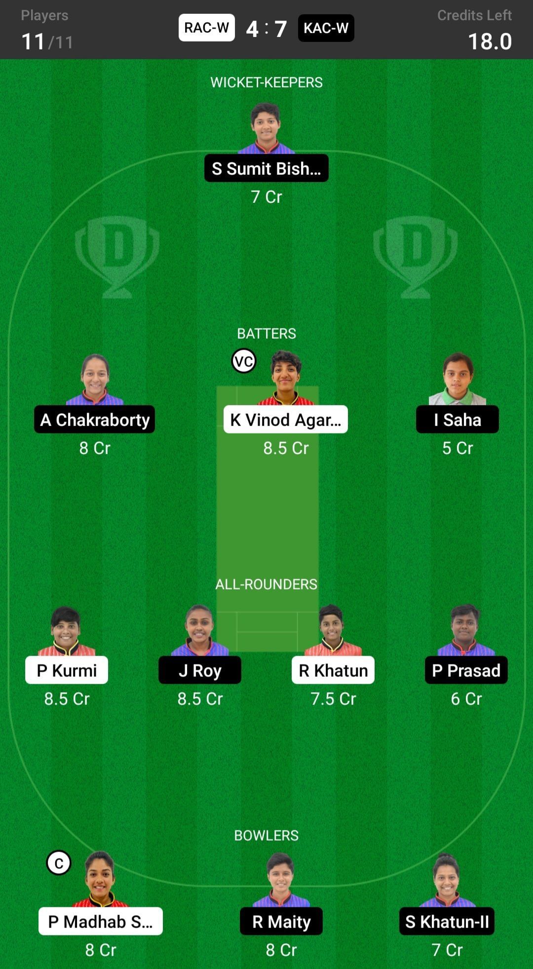 KAC-W vs RAC-W match captain and vice-captain choices