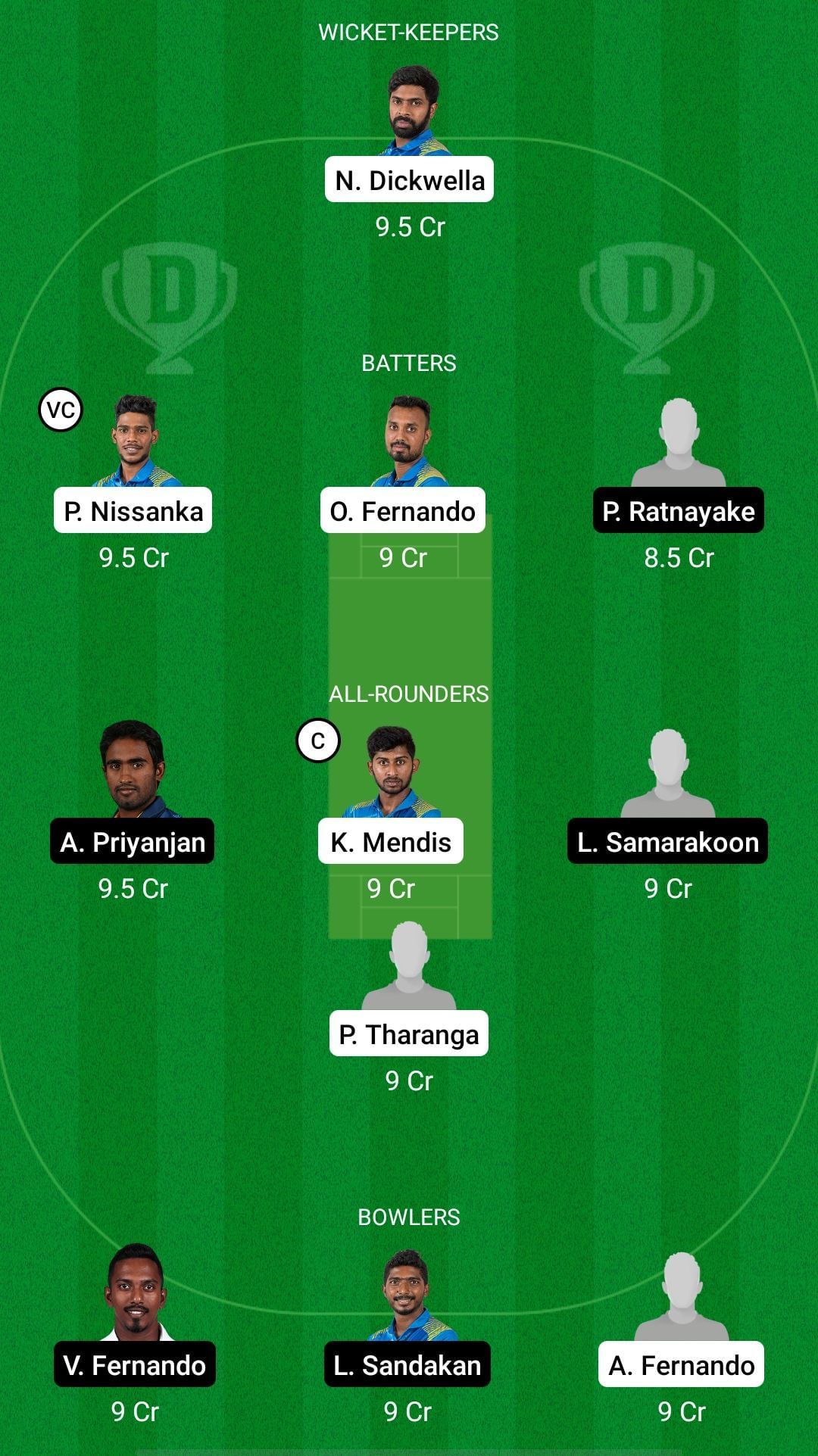 Captain: Kamindu Mendis. Vice-Captain: Pathum Nissanka.