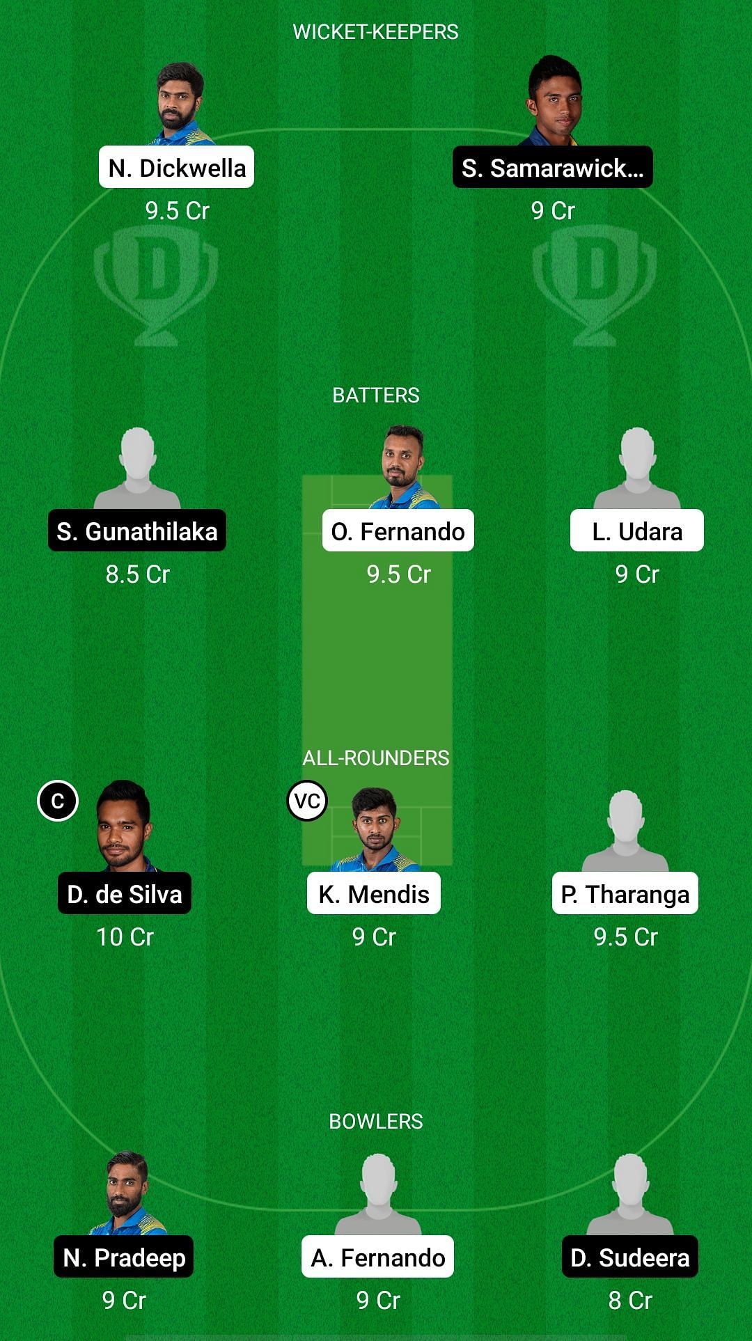 Fantasy Suggestion #1: Niroshan Dickwella, Sadeera Samarawickrama, Santhush Gunathilake, Oshada Fernando, Lahiru Udara, Dhananjaya de Silva, Kamindu Mendis, Pulina Tharanga, Nuwan Pradeep, Pramod Madushan, Ashian Daniel.