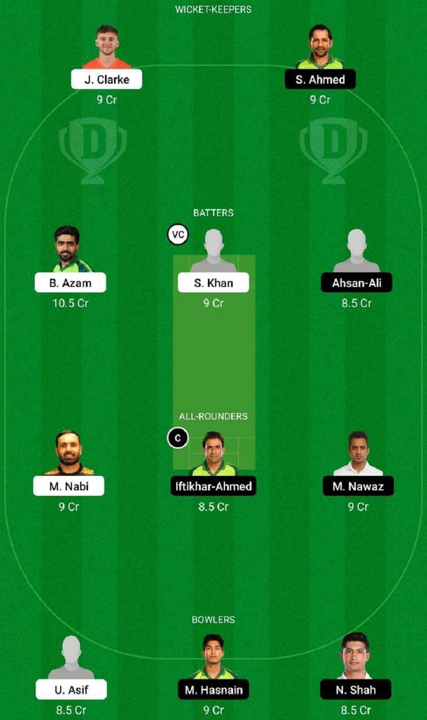 Captain: Babar Azam. Vice-captain: Iftikhar Ahmed.